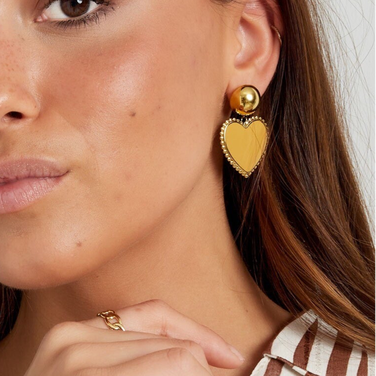 Hoe schattig zijn deze oorbellen met een dot en een zwart hartje met een gouden randje.