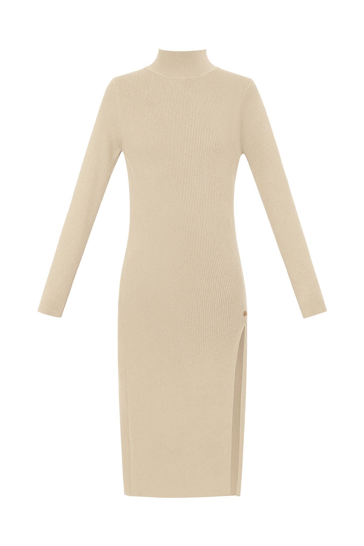 Deze mooie one-size midi jurk heeft een mooi effect door de split en zit erg comfortabel. De jurk is gemaakt van 70% viscose en 30% polyester.