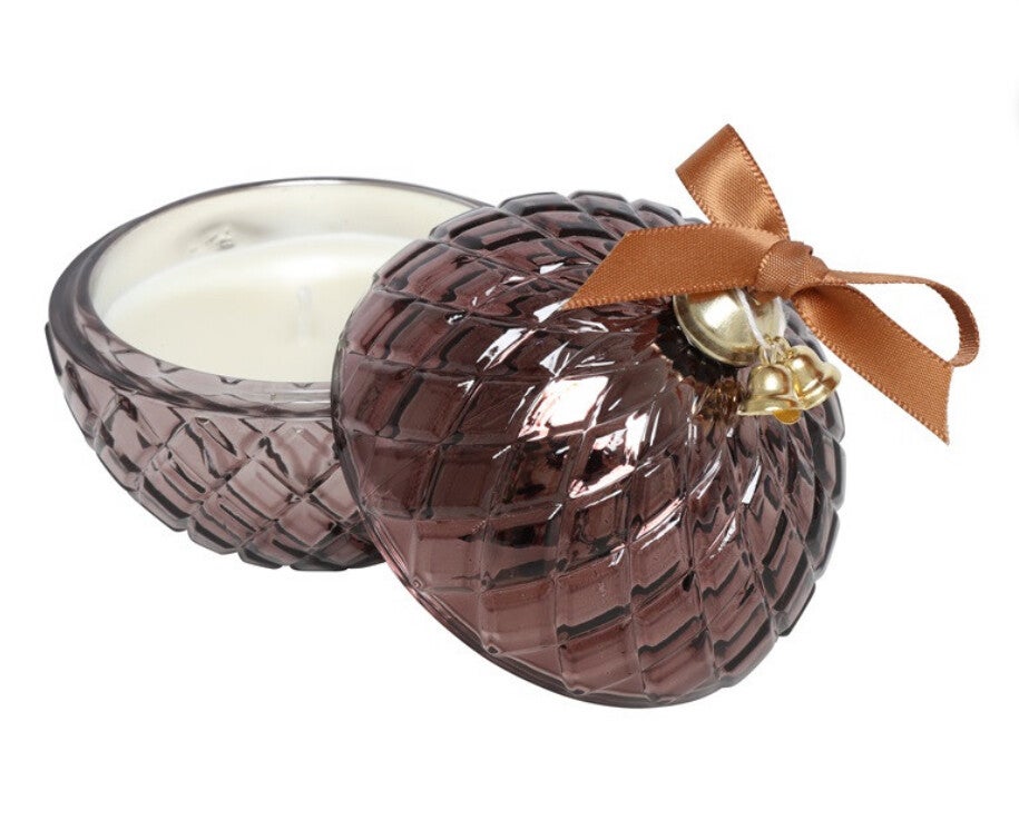 Deze sfeervolle kaars in de vorm van een kerstbal voegt direct warmte en elegantie toe aan je winterdecor.